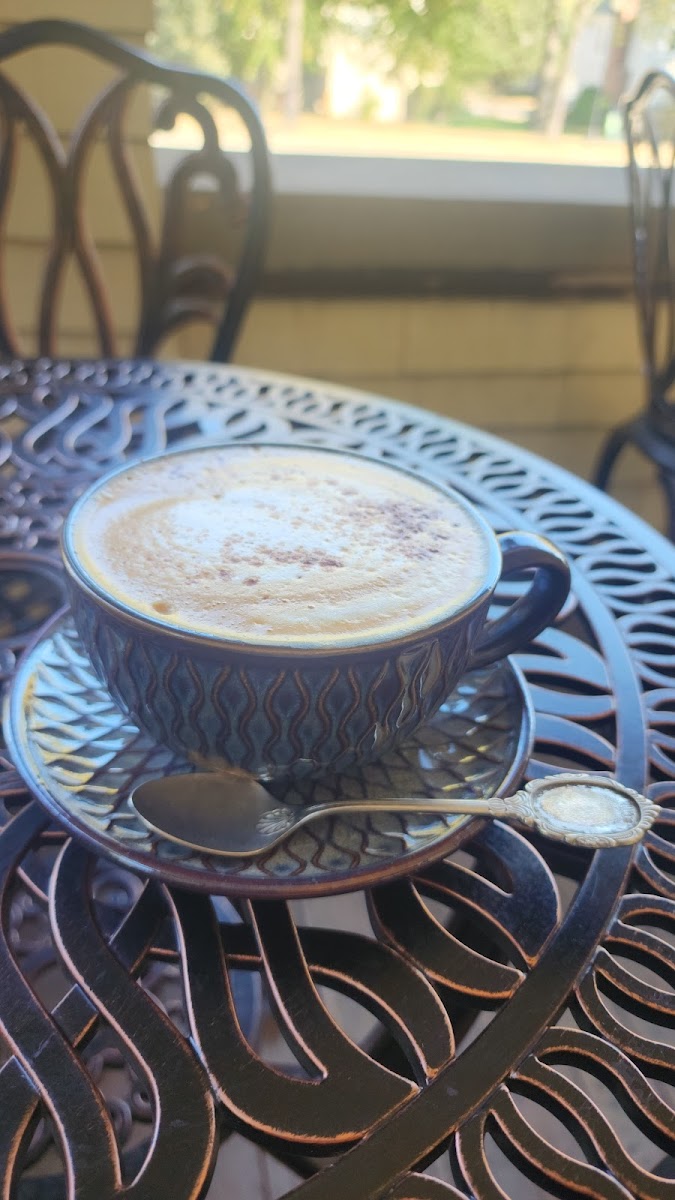 What an absolute gem! We were looking for a cutesy cafe to spend the Fall morning at and were not disappointed at all with this place. There were halloween decorations up and little dnd decorations in there too. They had a really good selection of Fall themed drinks as well. I had a dirty pumpkin chai with pumpkin cold foam. The barista did an excellent job - the ratio of chai to coffee was absolutely perfect. I think it's also really cool that they're eco friendly - they give you glasses to drink from even for iced drinks when drank there. Will definitely be back!